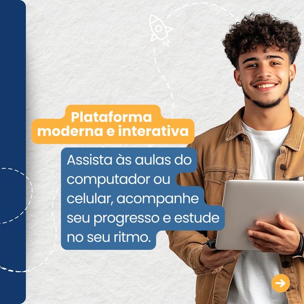 Conteúdo 100% online. Acesse pelo computador, celular ou tablet, avance quando puder e retome exatamente de onde parou.
