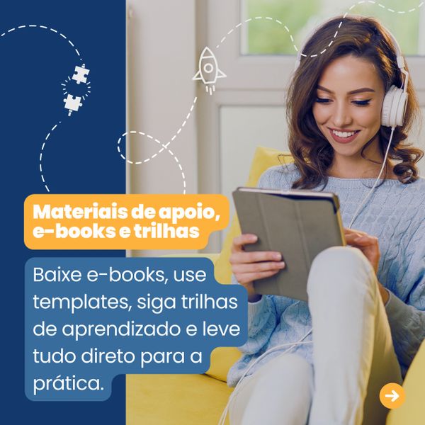 Materiais digitais em cada curso com exemplos reais e/ou negócios fictícios e exercícios práticos para acompanhar as aulas, revisar os conceitos e aplicar na prática com mais clareza e organização.
